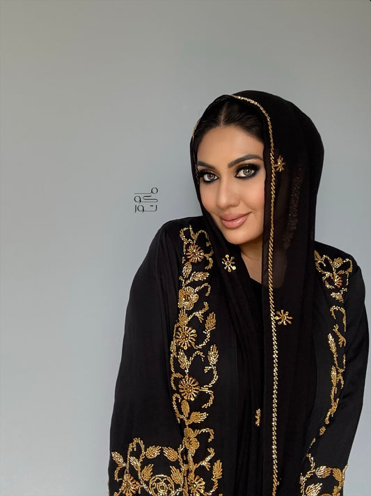 Nouria (Gold) - Open Abaya with Hand Crafted Glass Beadwork - Gold