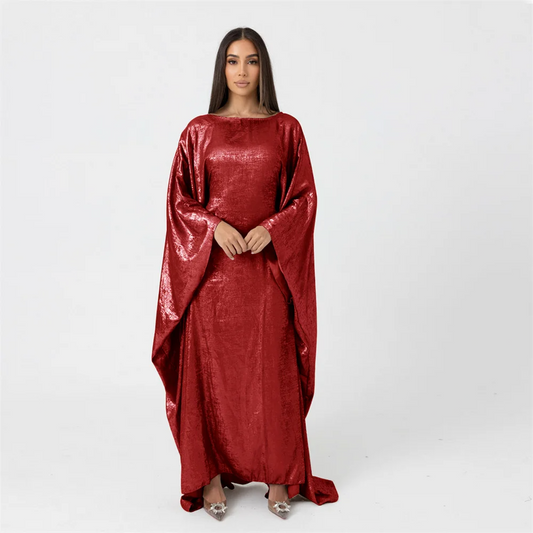 EMERINA - Glittery Butterfly Abaya - Garnet
